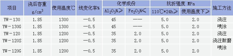 江蘇江能新材料科技有限公司生產(chǎn)的輕質(zhì)高強度耐火澆注料理化指標(biāo)如下: